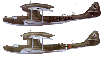 The D0 18 was a directly descendant of the outstanding whale-family. It's first flight was in 1935, now as a twin engine Parasol single wing plane. The Do 18 D was replaced as a sea-reconnaissance plane by the Do 18 G-1 at the outbreak of war. An unarmed training version with double steering was named Do 18 H. The production was canceled in 1940 as many Do 18 G-1 were rebuilt to Do 18 N-1 for SAR-purposes. The Do 18 was seen in the first months of the year above the North-Sea and the Channel, mainly during the Batlle of Britain. In total, 100 Do 18 were built, thereof 70 Do 18 G's.
