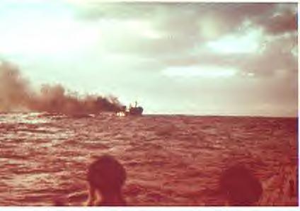 The tanker is sighted. She is listing terribly, and looks like she's going