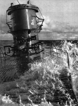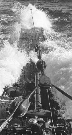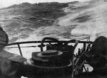 ![]() Warschau! The stern of a VIIC pumps in the sea. Waves three times as high as the tower of the u-boat are rolling towards the aft. The men are wet as fishes and the length of a guard duty is down to 2 hours. |