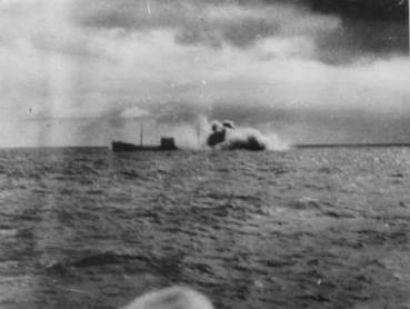 2109 REPOSITIONED AND SHOT ONE T-III WITH A Pi-2 PISTOL (#14067) FROM TUBE TWO AT 1200 METERS. MY HEADING IS NOW 179; MERCHANT IS CONSTANT AT 210; TARGET HIT AND DESTROYED. RESULTING FIRE INDICATES NO AMMUNITION OR FUEL ABOARD. NO SURVIVORS NOTED; NO RESPONSE TO HER DISTRESS ON 600 METERS, HOWEVER WE ARE DEPARTING AREA IMMEDIATELY.