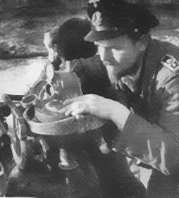 The navigator is checking the course. |