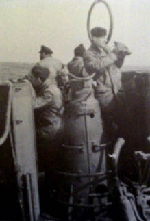 Attack by a Sunderland aircraft. I scream "Alarm", and we jump down the hatch.
